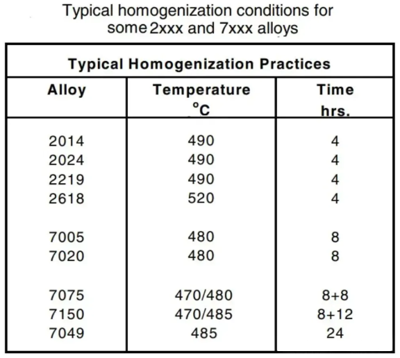 Typical billet homogenization practices for 2xxx and 7xxx alloy billets are shown in the figure below.