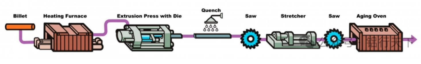 A typical process in an extrusion shop starts with selecting high-quality billets and continues with aging and final processing