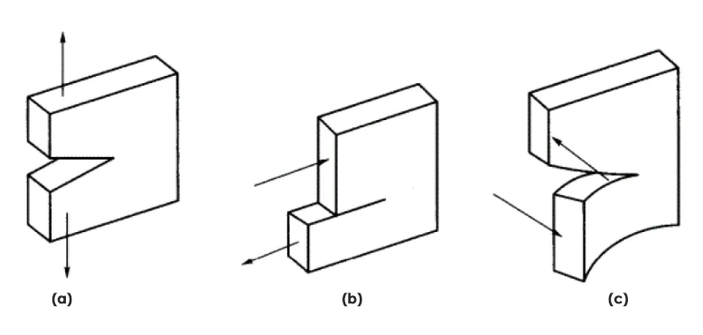 Brittle fracture: Little or no plastic deformation occurs before fracture; the fracture surface is bright, crystalline, and relatively flat.