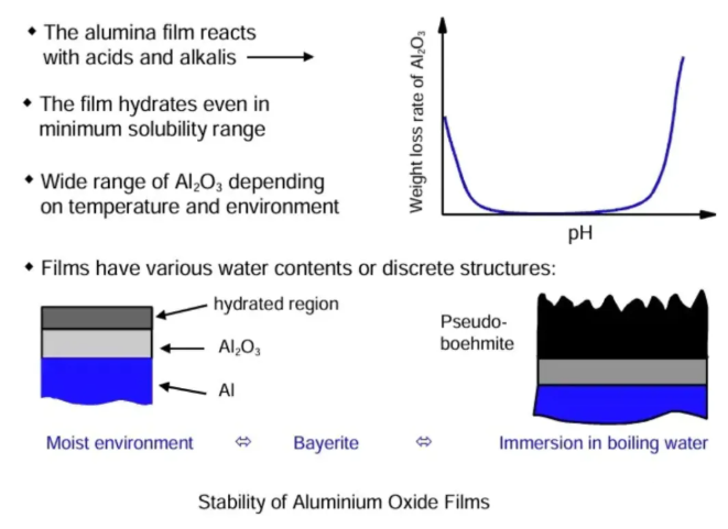 Depending on the specific conditions, the established potential may further react with the environment; therefore, hydration on the outer surface of the aluminum oxide film can continue to form multilayered films.