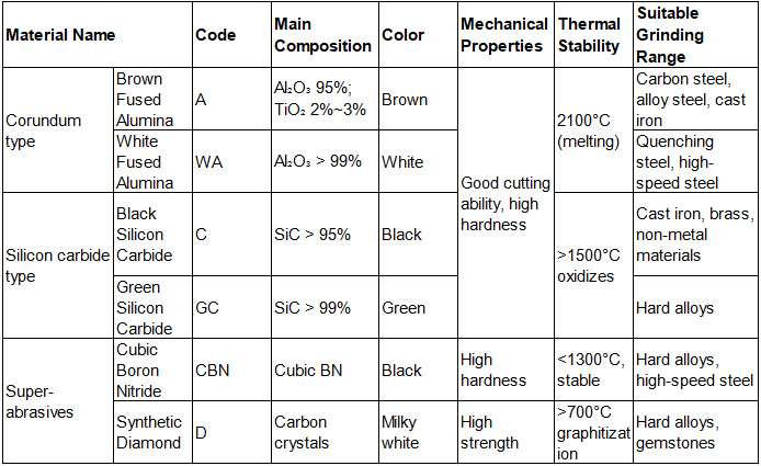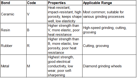 ③ Bonding material: Holds the abrasive grains in place, affecting wheel strength, toughness, and durability;