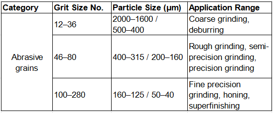 ② Grain size: The size of the abrasive grains; finer grains produce smoother surfaces;